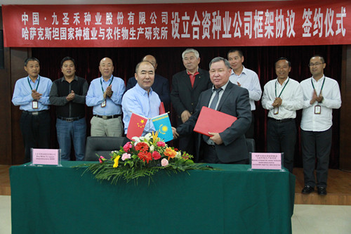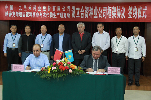 我公司总部九圣禾种业股份有限公司与哈萨克斯坦种植业与农作物生产研究所设立合资种业公司框架协议成功签约。