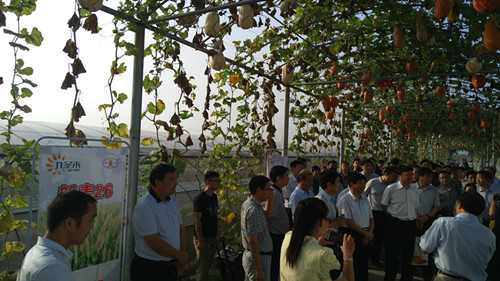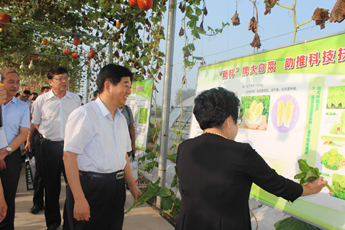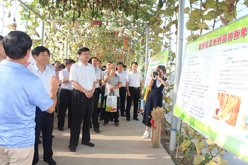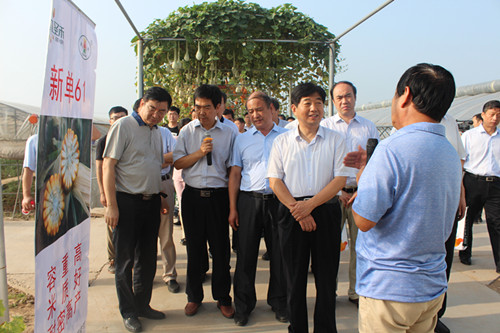 2017年8月9日早上,市委副书记阮金泉,副市长李刚带领市直有关单位、县(区)相关部门负责人60余人到我公司进行考察,观摩公司农产品,为产业扶贫找路子、选产品,市农科院院长闫玉信、党委书记唐振海携院领导进行了接待 ,公司副总经理王士坤参加陪同。