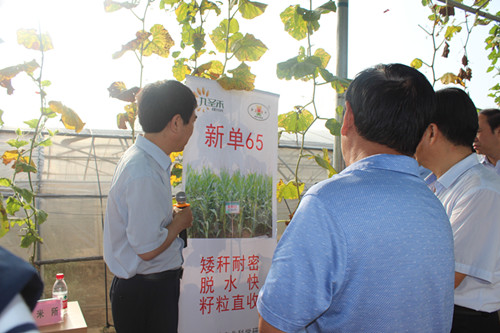 玉米育种专家张学舜、周联东还向阮书记一行介绍了公司即将推出的新玉米品种,籽粒直收新品种新单65、早熟脱水快宜机收新单68、新科891,粮改饲青贮品种新科910。蔬菜育种家原连庄老师也介绍了新乡小包23、新中78、新科快菜等蔬菜品种,助推科技扶贫。