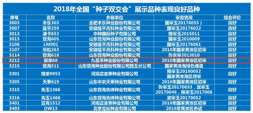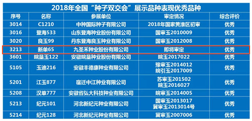 2018年对玉米来说是不平凡的一年,经历了7月10日至8月12日超过35℃持续高温和8月中旬强风暴雨天气后,玉米好多品种发生大面积倒伏,九圣禾新科新单65和新单68抗倒性表现突出,铁秆不倒。新单65在2018年全国“种子双交会”展示玉米品种和核心展示品种现场鉴评会上被选为优秀品种,新单68被评为优良品种。